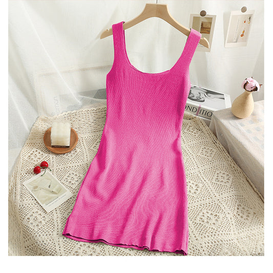 Women black knitted camisole waist cinching slimming dress