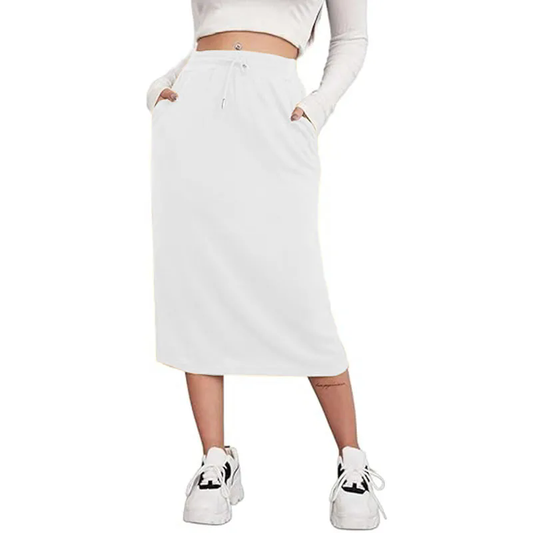 2024 Women High Waist Skirt Vintage Elastic Line Pleated Skirt with Pockets